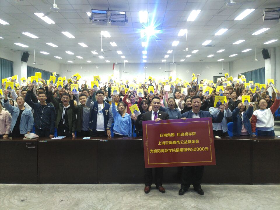 成杰老师将自己独创手写的“生命智慧的十大法门”赠送王副书记,并且还给现场近500位同学每人赠送了一本《从日薪五元到亿万身家》的书,总价值近50000元。