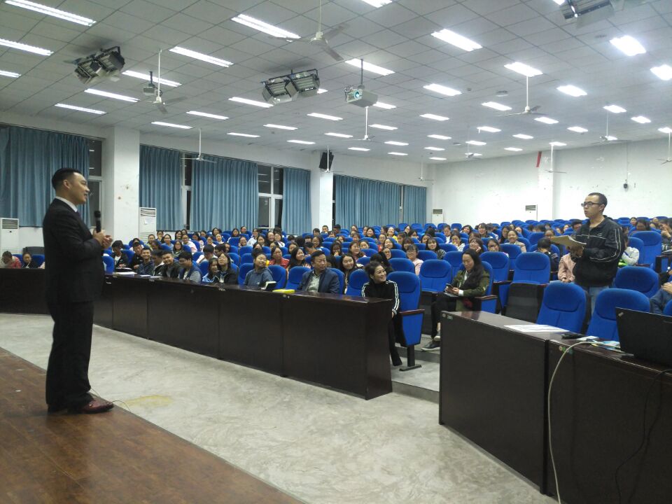 2017年11月17日晚7点,在绵阳师范学院高新校区厚德楼245室,受巨海集团绵阳分公司营销总监、我校文史学院2006届校友李晓琴邀请,青年演说家成杰老师为文学与历史学院大一的同学们做了一场主题为“从日薪五元到亿万身家”的精彩演讲,文学与历史学院王兴伟副书记莅临本次讲座。