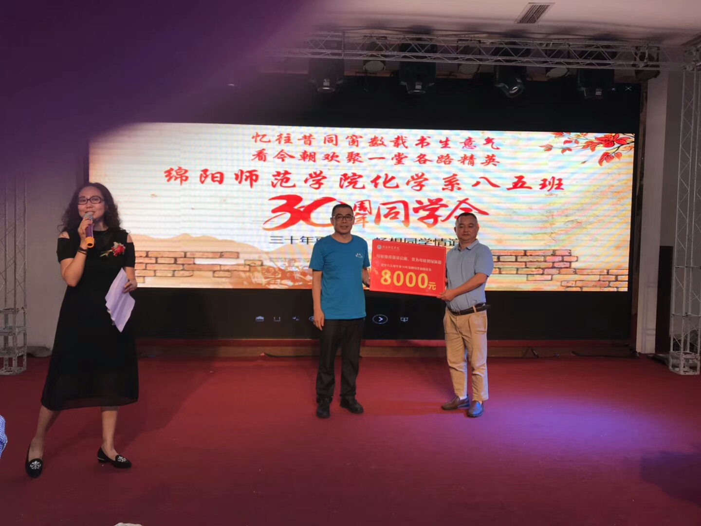 化学85级校友们向母校捐赠8000元人民币用于种植树木,绿化新校区。校友办龚胜泉主任代表母校接受了捐款。